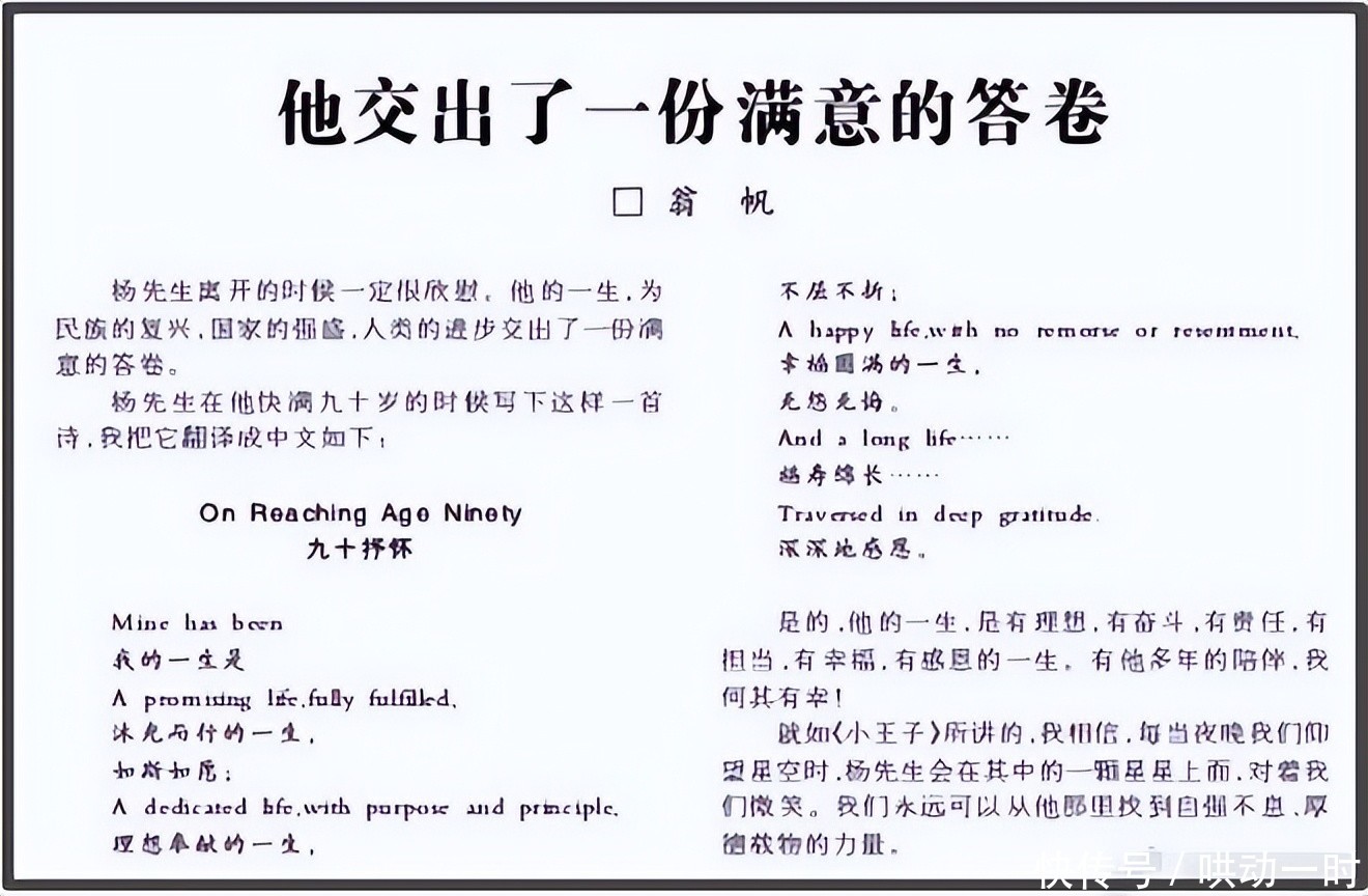翁帆在怀念杨先生的文章里提到,她会继续做和学术有关的工作,想把杨先生的一些书翻译成外文,让更多外国学者知道中国科学家的成就。
