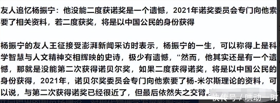 杨振宁先生晚年曾表达过一个遗憾,那就是未能第二次获得诺贝尔奖。